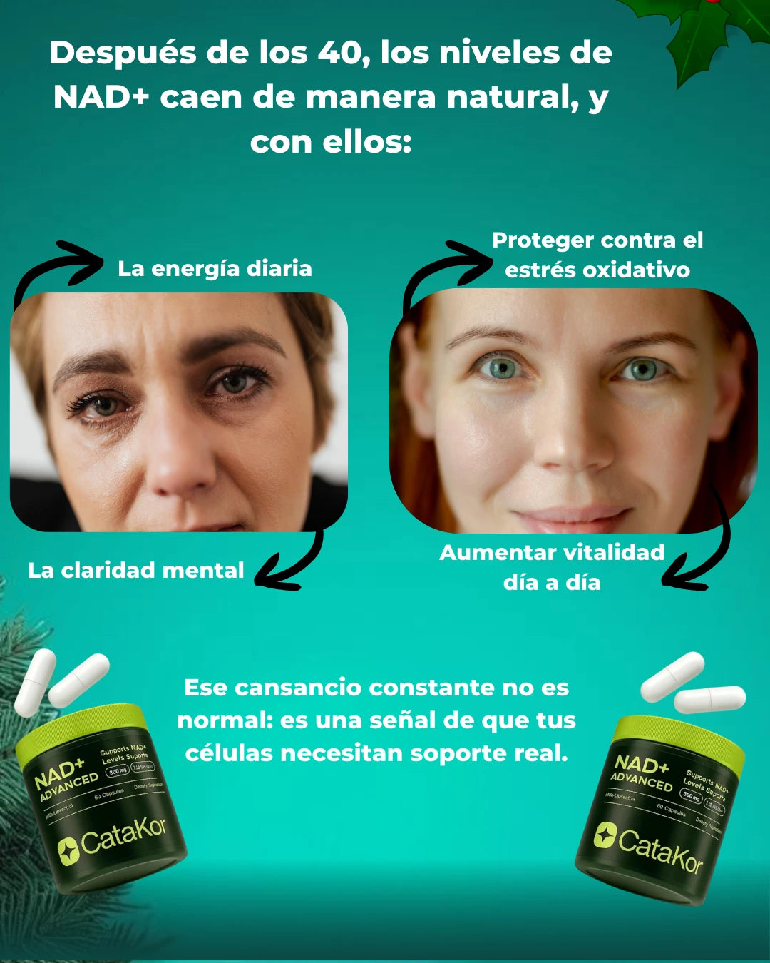 Muchas mujeres y hombres sienten cansancio constante, niebla mental y cambios visibles porque sus niveles de NAD+ bajan naturalmente después de los 40.